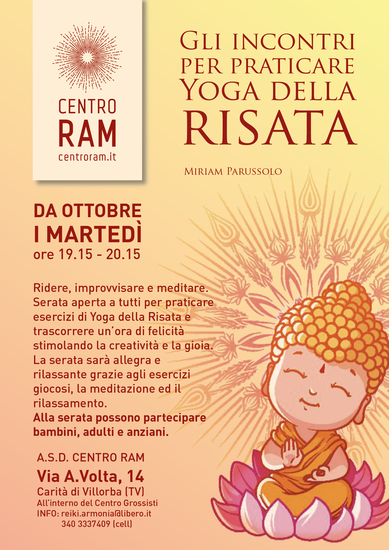 Serata aperta a tutti per praticare esercizi di Yoga della Risata e trascorrere un’ora di felicità stimolando la creatività e la gioia. La serata sarà allegra e rilassante grazie agli esercizi giocosi, la meditazione ed il rilassamento.